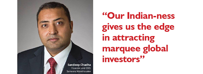 Sameera Warehouster is an Industrial real estate developer that offers end to end warehouse solutions to clients on a pan India basis. With Sameera’s land acquisition expertise and Warehouster’s development & asset management strengths, Sameera Warehouster is well positioned to offer all services under one umbrella from Land acquisition, liasoning, leasing, development and asset management.